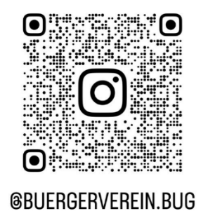 Wir laden alle Buger herzlich dazu ein unserem neuen Format auf Instagram zu folgen und hoffen auf rege Beteiligung und auf Ihre Zustimmung der moderneren Form der Kommunikation. Sie finden uns unter dem Accountnamen: buergerverein.bug, oder unter dem QR Code: